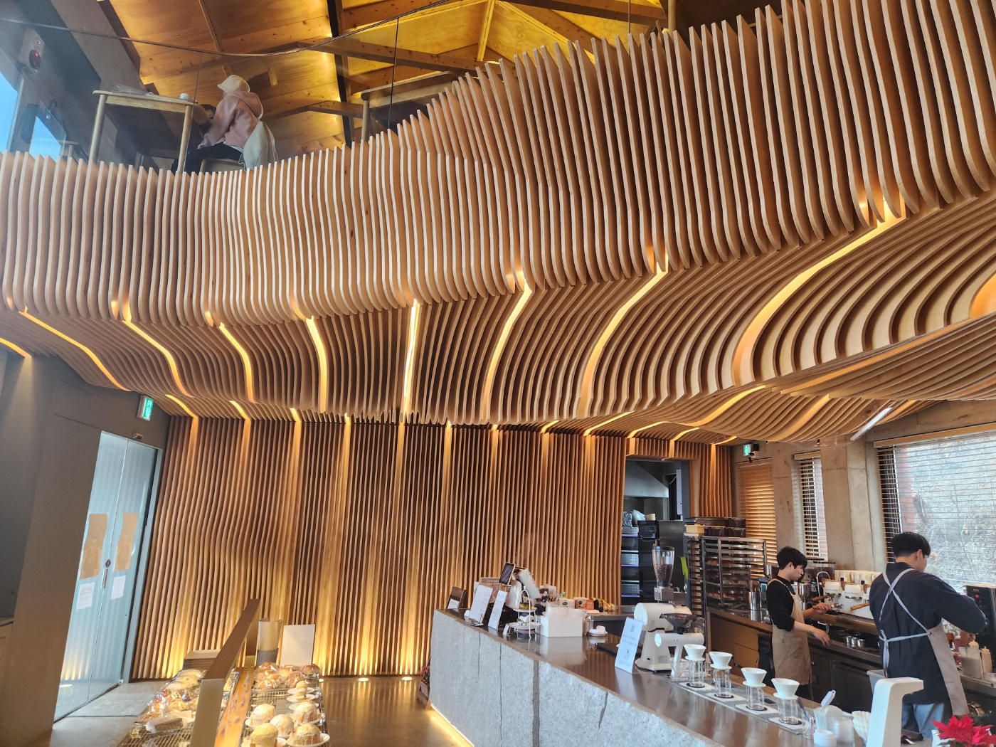 좌석은 주로 위에 있다. 카운터는 1층에 있고,