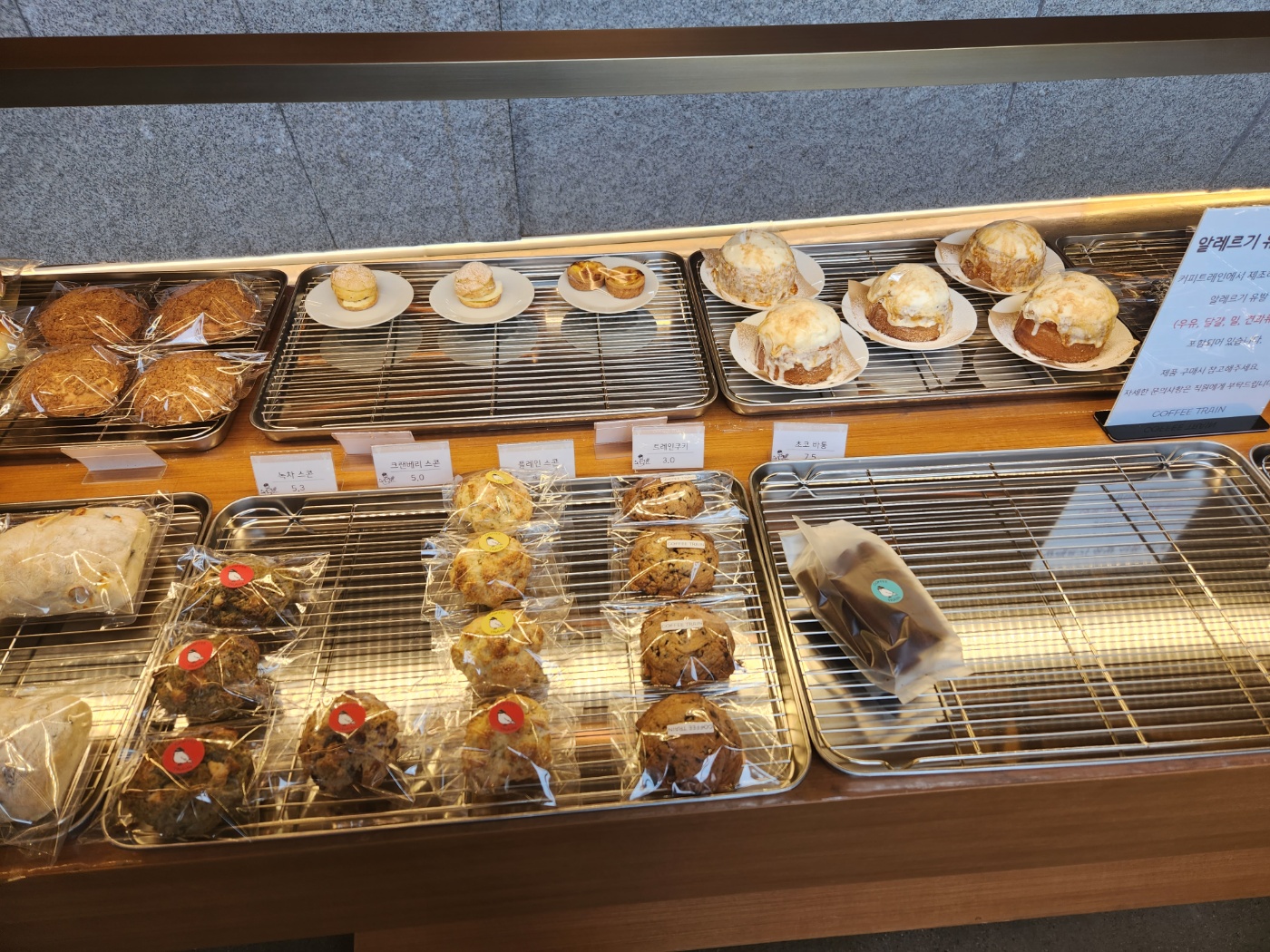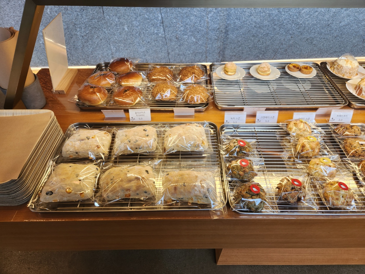 1층 카운터 앞에는 빵과 케이크 등 디저트 종류가 많음.