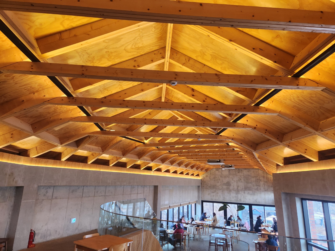 천장이 널찍하고 우드톤으로 트여 있어